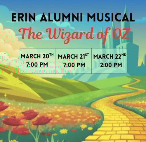 Come support our talented students in the Erin Alumni Musical production of The Wizard of Oz Jr. at HUHS!